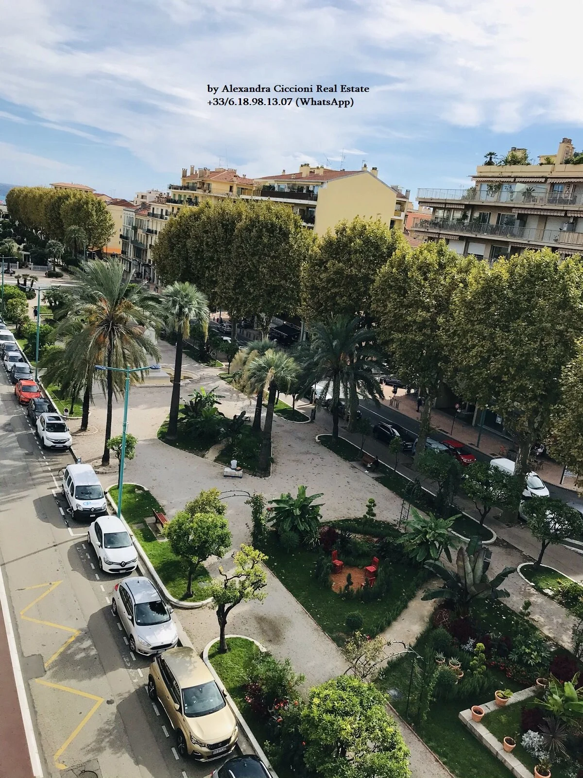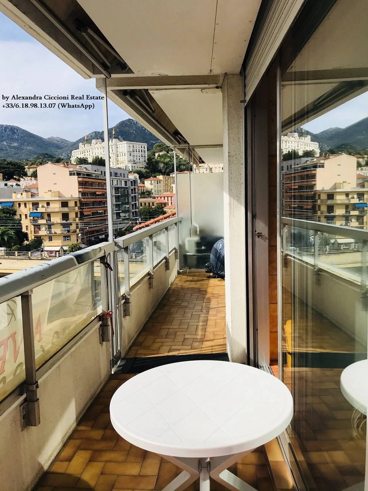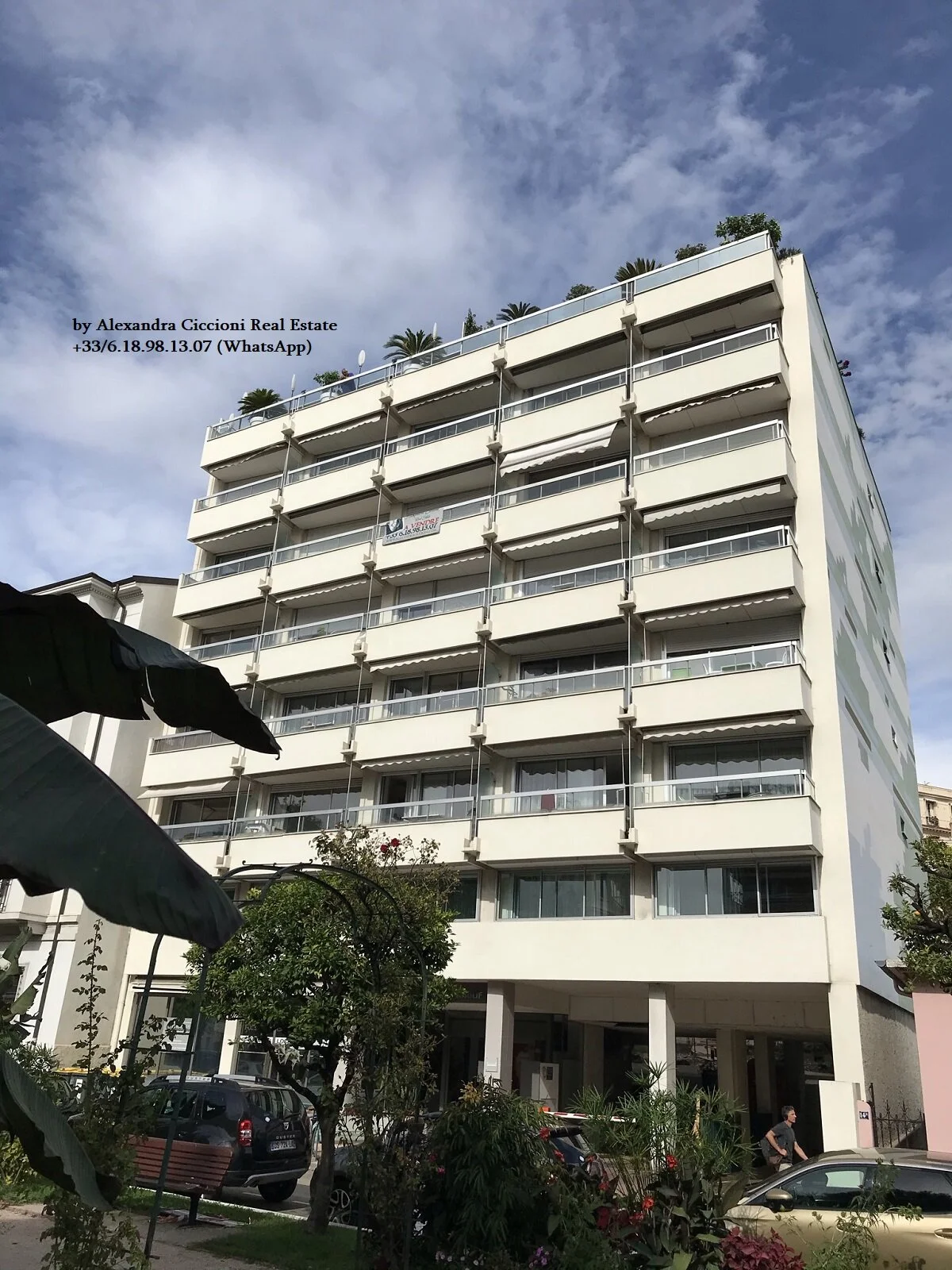 Situé au 5ème étage avec ascenseur, bel appartement 2 PIECES de 44 m², terrasse de 20 m², cuisine séparée, exposition plein OUEST, avec vue ouverte à 180 degrés sur les jardins de Bioves et vue latérale sur la mer.