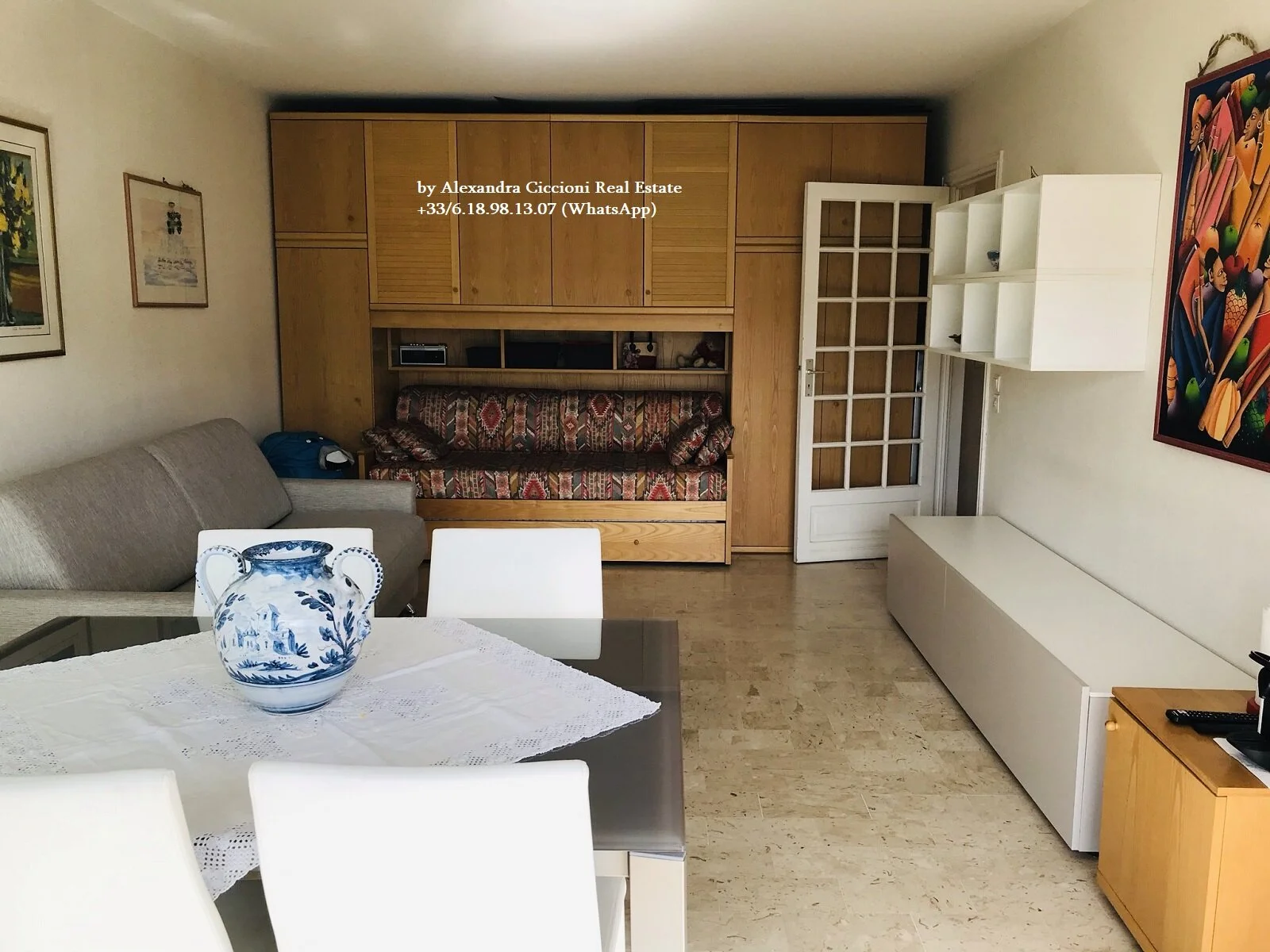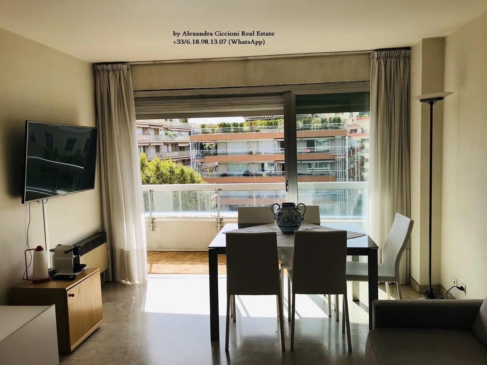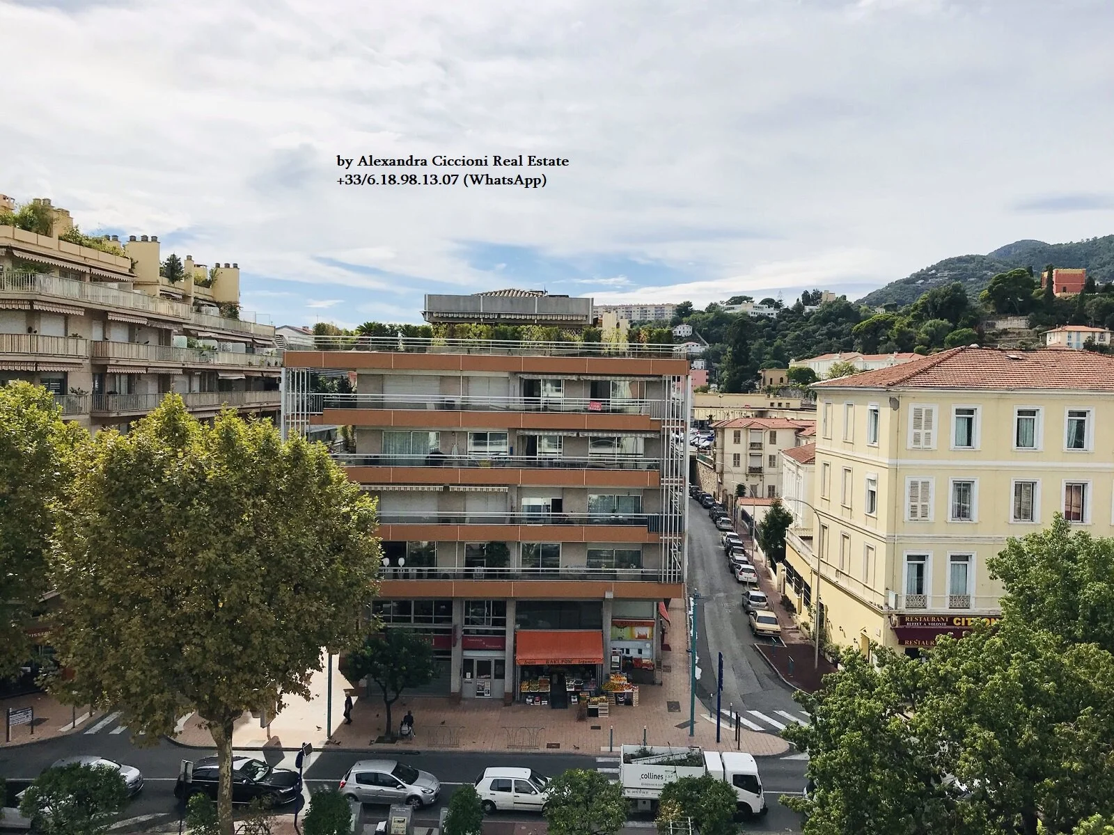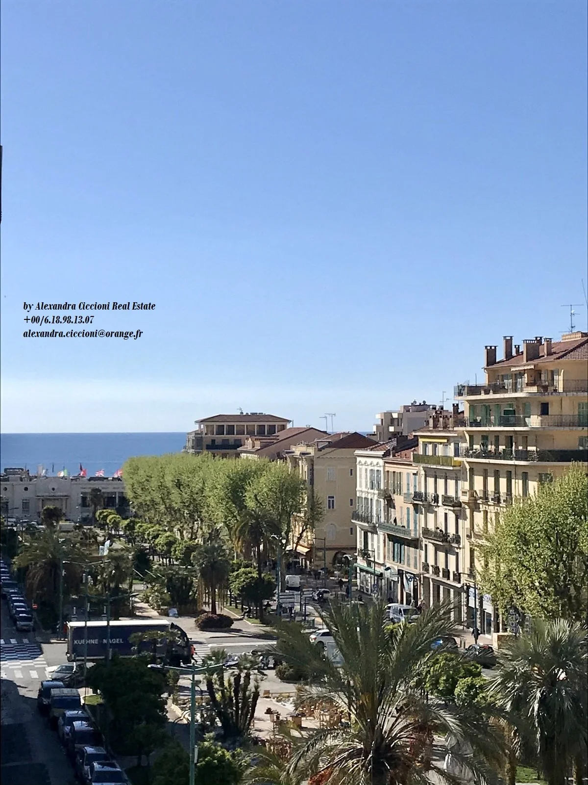 Situé au 5ème étage avec ascenseur, bel appartement 2 PIECES de 44 m², terrasse de 20 m², cuisine séparée, exposition plein OUEST, avec vue ouverte à 180 degrés sur les jardins de Bioves et vue latérale sur la mer.