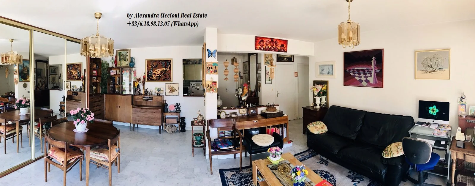 Spacieux et lumineux 3 pièces (transformé en 2 pièces) de 70 m2 traversant, 3eme et dernier étage avec 20 m² de magnifique terrasse avec 180 degrés sans vis-à-vis et vue mer et Cap Martin, expo OUEST.